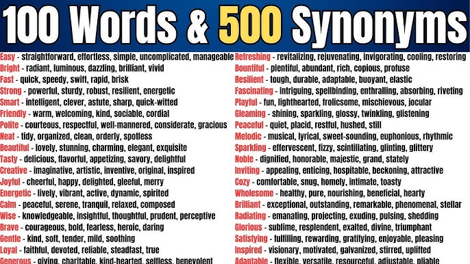 By using synonyms, your writing becomes smooth, colorful, and fresh. With practice, you can quickly decide which synonym fits best. Remember: the goal is not just to replace words but to make your ideas clear and strong.